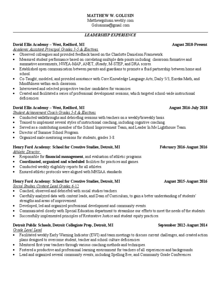 Golusin Resume 2020 Weebly Pdf Teachers Educational Assessment